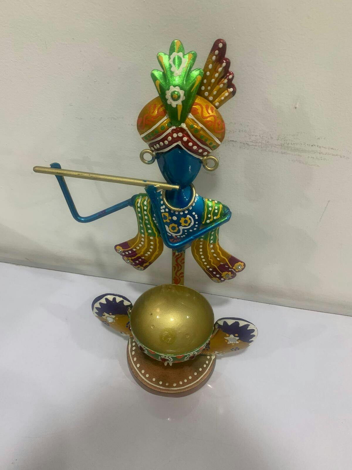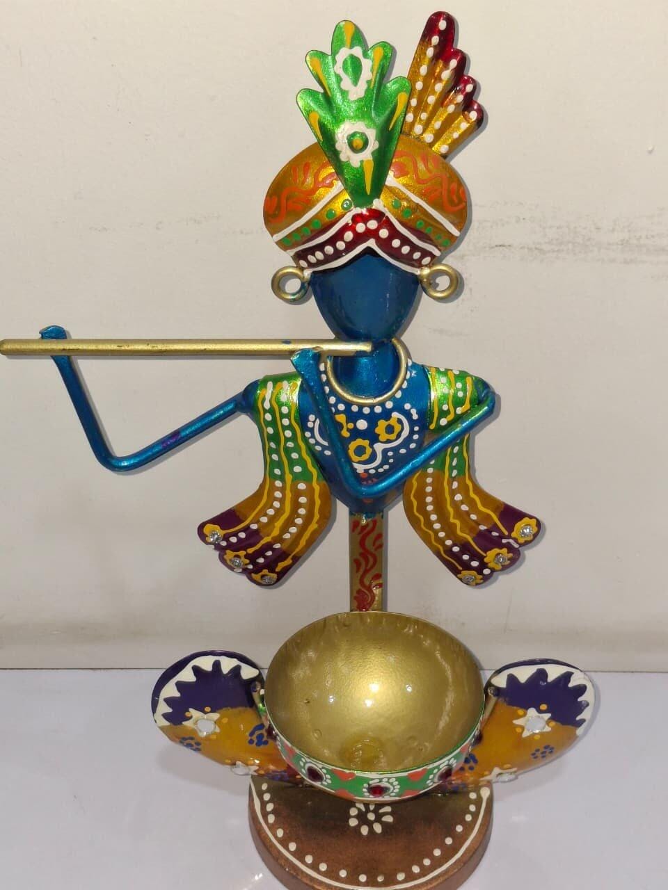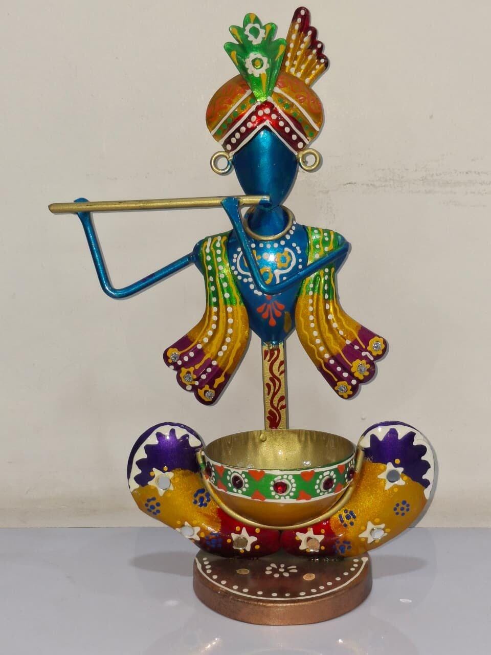Handcrafted Metal Krishna Tealight Candle Holder